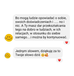 Po zakończeniu spotkań możesz zdecydować, albo kończymy całkiem współpracę, albo chcesz przedłużyć spotkania. Pamiętaj, jeśli się ,,rozstaniemy” nadal będziesz miał we mnie przyjaciela i możesz się odezwać kiedy tylko chcesz.